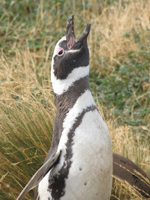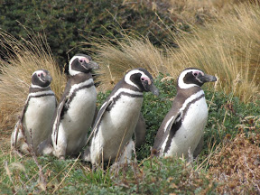 Il semble que nous ne soyons pas tout à fait rassasiés de voir des manchots car nous sommes allés visiter une colonie de manchots de Magellan au Seno Otway (fjord Otway) où vivent environ 6000 couples. Il s’agit de la même variété de manchots que Lédine et Yves ont vu à l’Isla Magdalena. Mesurant environ 70 cm, ils sont de la même taille que les manchots que nous avons observés en Antarctique.