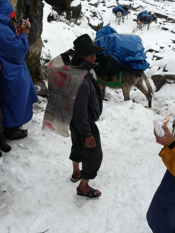 Pendant 3 jours, une pluie battante s’est acharnée sur nous, laissant peu de place à des éclaircies. La deuxième journée était la plus difficile en raison du col Punta Union à 4750 mètres que nous devions franchir. En gagnant de l’altitude, la pluie s’est transformée en neige. Nous maintenions un rythme lent, mais constant et malgré les nuages, c’est avec grande satisfaction que nous avons atteint le col.