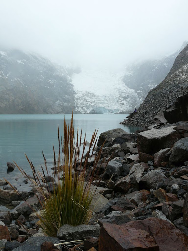 Un autre point d’attraction était le camp de base de l’Alpamayo et sa lagune. Le spectacle auditif était très impressionnant, car face à nous, il y avait des éboulis de roches de façon constante. Le jeu était donc le suivant : repérer visuellement les pierres que nous entendions dévaler la pente.